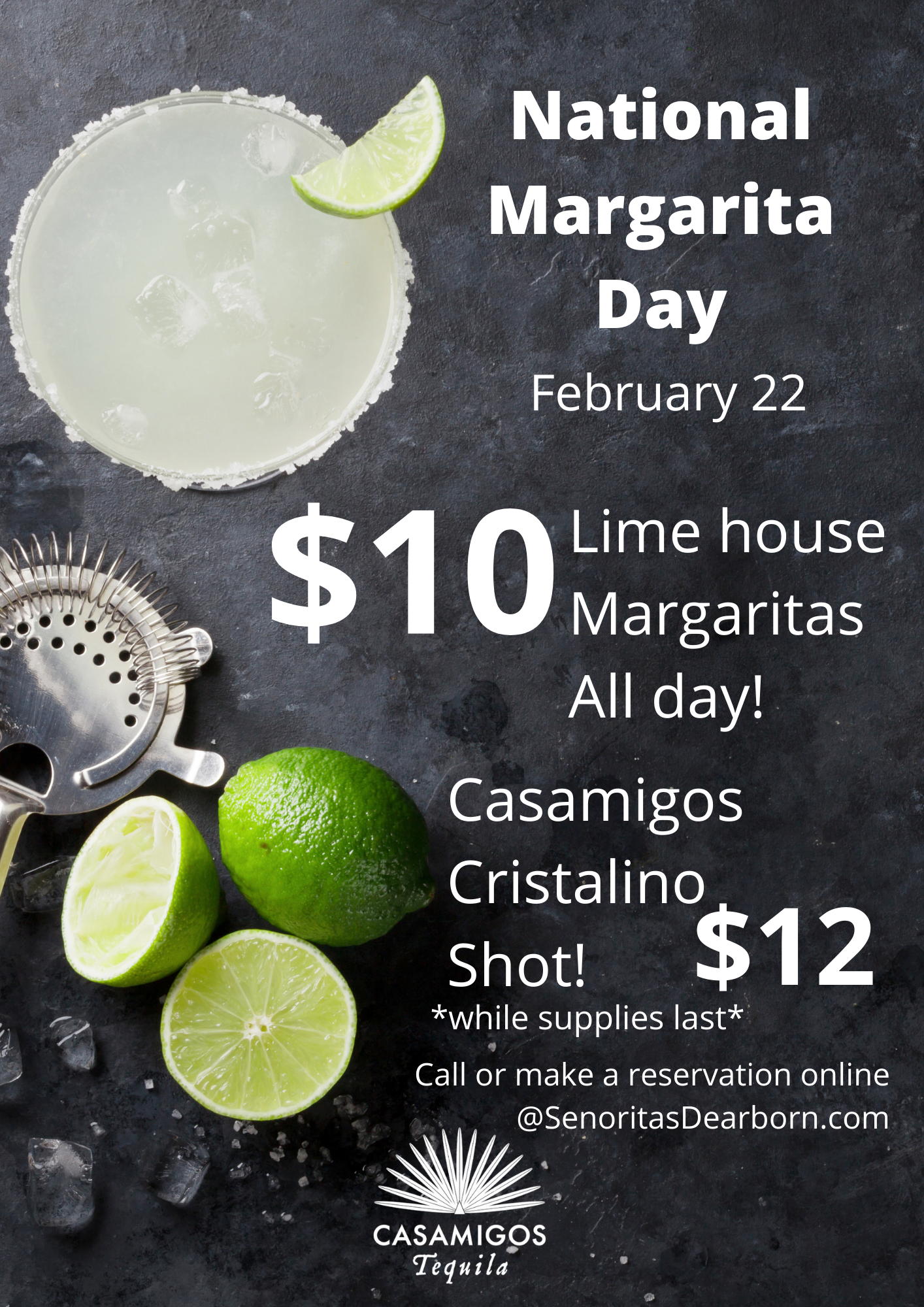 Come celebrate National Margarita day with us on February 22nd.